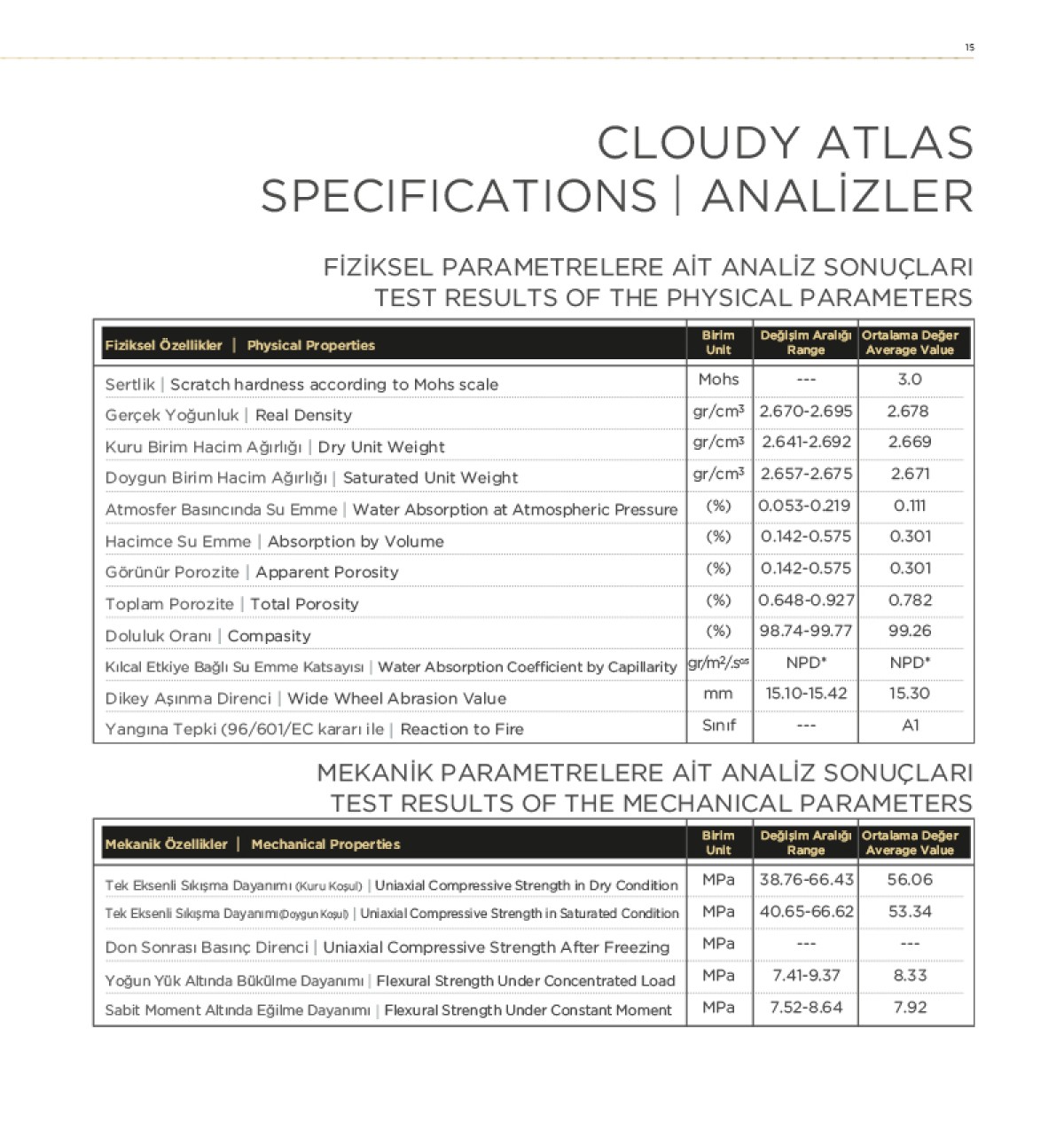 Cloudy Atlas, içindeki maceracı ruh ile bizlere yeni heyecanlar vaad etmektedir. Trend renk ve dokusu ile muhteşem cila kabiliyetine sahip olan Cloudy Atlas günümüz doğaltaş çeşitliliğine yeni ve kalıcı imaj olarak katılmıştır. Sizlere bu maceracı ruhu tanıtmaktan ayrı bir keyif aldığımızın altına çizmek istiyoruz.